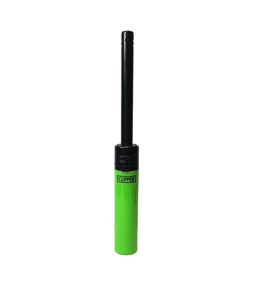 ولاعة كليبر بلون أخضر عصري وفوهة سوداء طويلة تمنحك وصولاً مثالياً لشعلة دقيقة وآمنة.